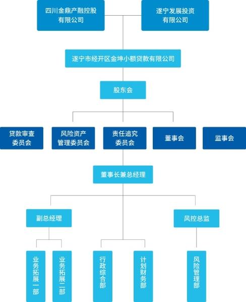 遂寧市經(jīng)開區(qū)金坤小額貸款有限公司(以下簡稱遂寧金坤) 成立于2015年9月,注冊資本35000萬元人民幣。該公司是由四川省能源投資集團(tuán)有限責(zé)任公司下屬金融平臺-四川金鼎產(chǎn)融控股有限公司(以下簡稱“金鼎控股”)作為主發(fā)起人,四川能投發(fā)展股份有限公司和遂寧發(fā)展投資集團(tuán)有限公司共同出資,完全依照市場化原則組建的國有小貸公司。